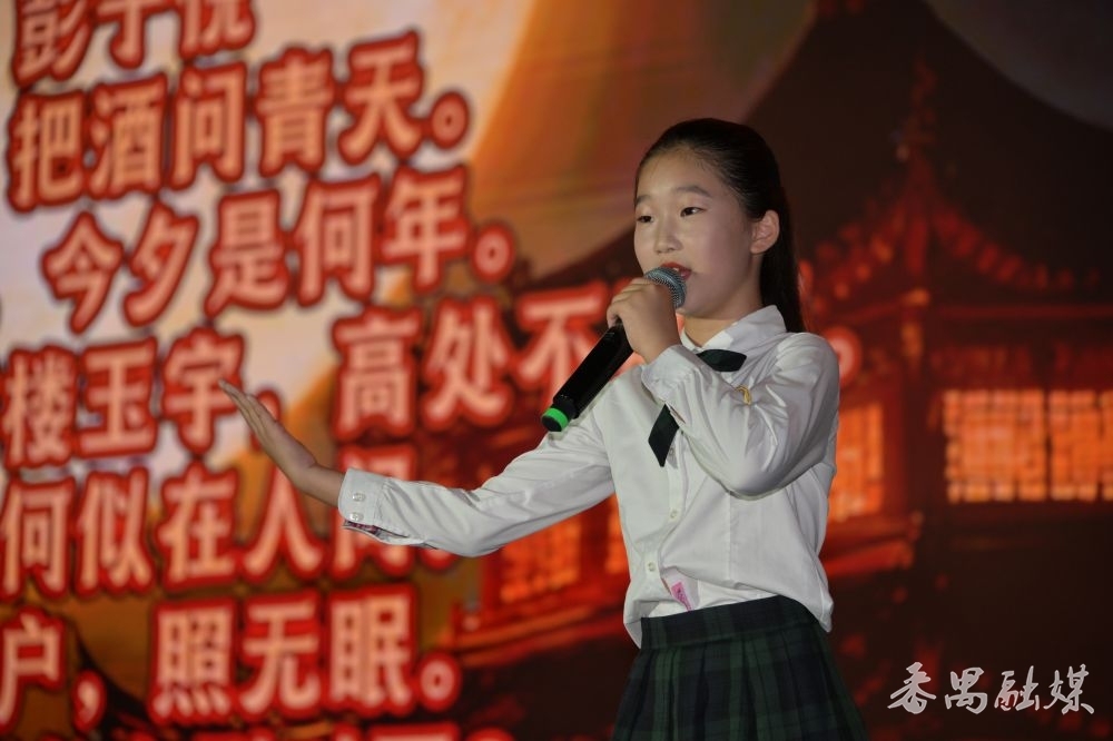 活动上,恒润实验学校的学生带来多首诗朗诵表演。《子夜吴歌·秋歌》保留乐府诗的直白与流畅,表达对战争的批判,对和平的向往;《江南》以采莲为题材,通过描绘江南水乡的景致与鱼戏莲叶的生动场景,展现劳动人民的欢乐生活;《望月怀远》将对远方亲友的思念与自身的孤独感融入诗中,借望月抒发深沉的怀远之情……一首首诗歌让现场嘉宾、学生在感受文学之美的同时,深化对中秋情感内核的理解。“我们举办这次活动,是想打破中秋佳节仅停留在‘吃月饼、赏月’的浅层认知,以诗会为载体,将中秋的团圆、思乡、咏月等文化内涵,通过古典诗词的朗诵、赏析具象化,避免学生在接受传统文化时的单一与枯燥,培养其人文素养,滋养其人文情怀。” 恒润实验学校校长张银华表示。
